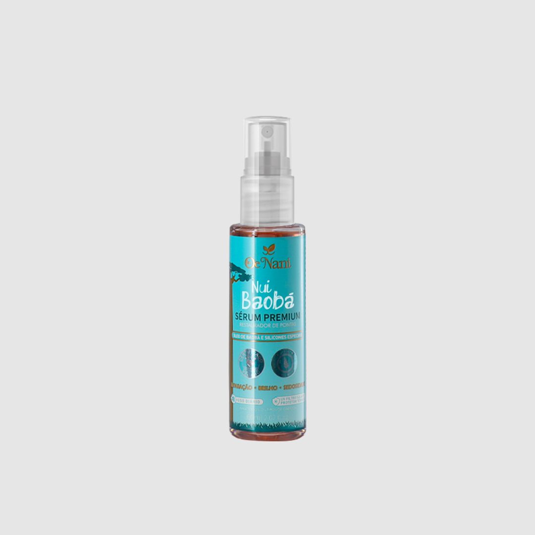 Sérum Nui Baobá (Excelente Baobá) tiene una fórmula extremadamente potente y concentrada. Desarrollado con selecciones de activos de alta tecnología como el Aceite de Baobab, protectores solares UV y termo protectores. Estos activos combaten las puntas abiertas, protegen del calor del secador y de la capa, modelan y eliminan las hebras rebeldes, dejándolas suaves y con un brillo extremo.